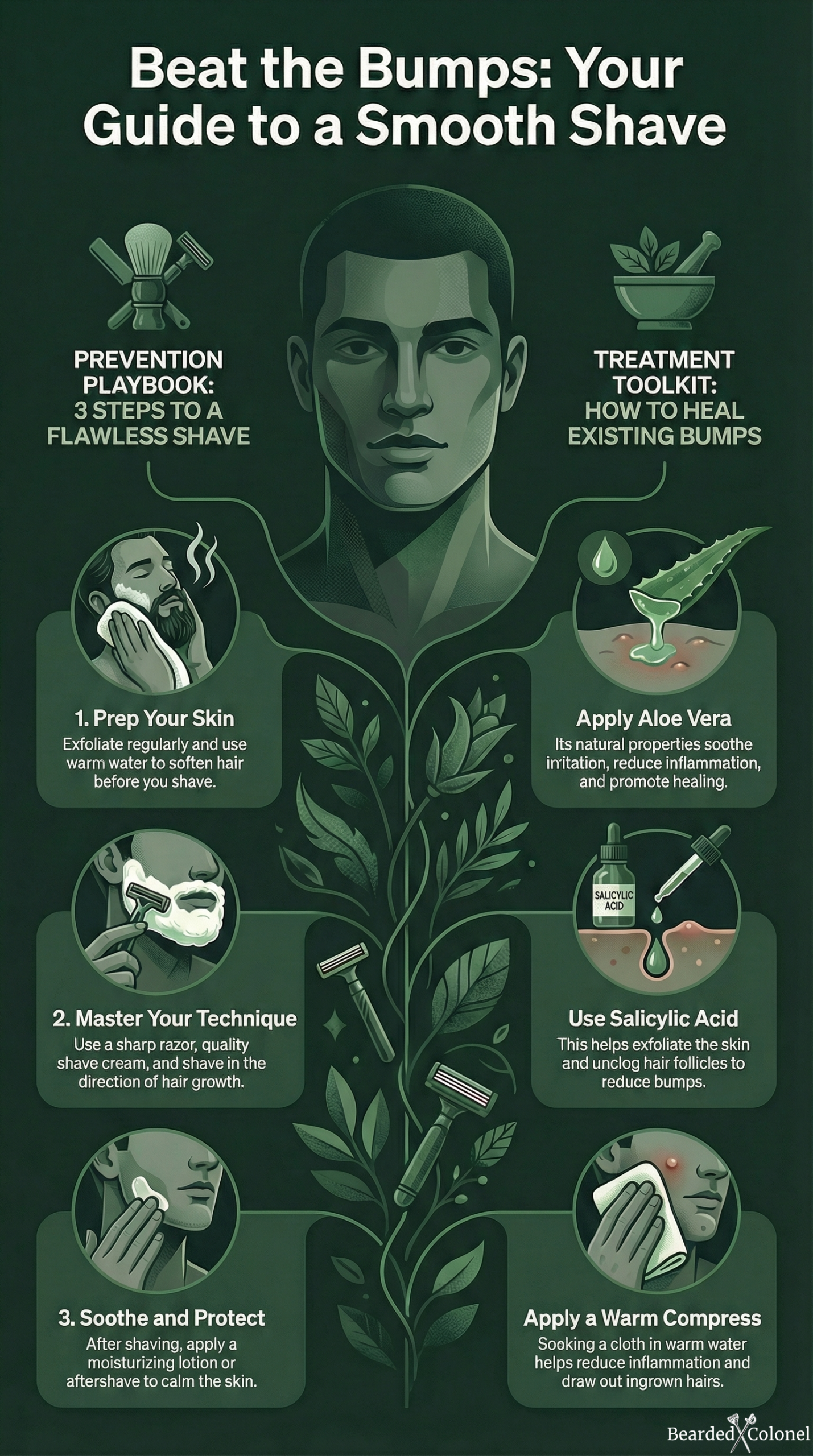 Denken Sie daran, dass der Schlüssel zur Beseitigung von Rasurpickeln in einer Kombination aus den richtigen Werkzeugen, einer sanften Technik und einer konsequenten Pflege nach der Rasur liegt.