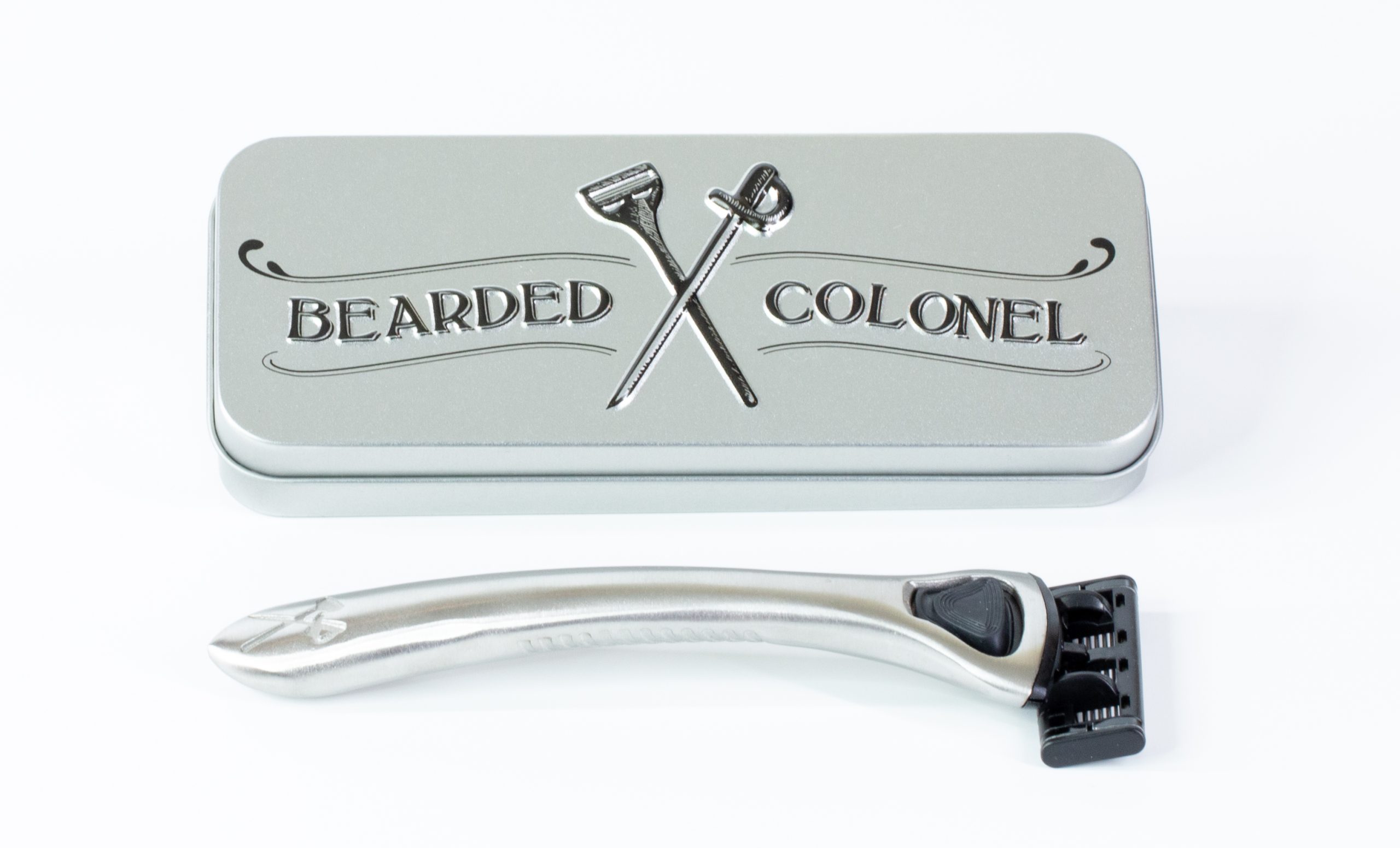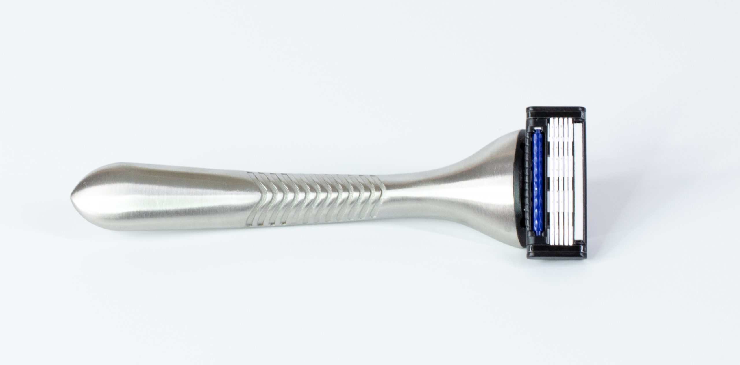 Keine Gimmicks, sondern zurück zu den Grundlagen mit hochwertiger Rasiertradition. Der Griff ist ein massives Stück Edelstahl, das ihm ein beträchtliches Gewicht verleiht, das man sofort zu schätzen weiß, wenn man ihn zum ersten Mal in die Hand nimmt. Das Gewicht trägt dazu bei, die Hand zu stabilisieren, um die Gefahr von Schnittverletzungen zu verringern. Außerdem ermöglicht es eine korrekte Rasur, da das Rasiermesser von der Schwerkraft und nicht von den Armmuskeln des Benutzers gezogen wird.